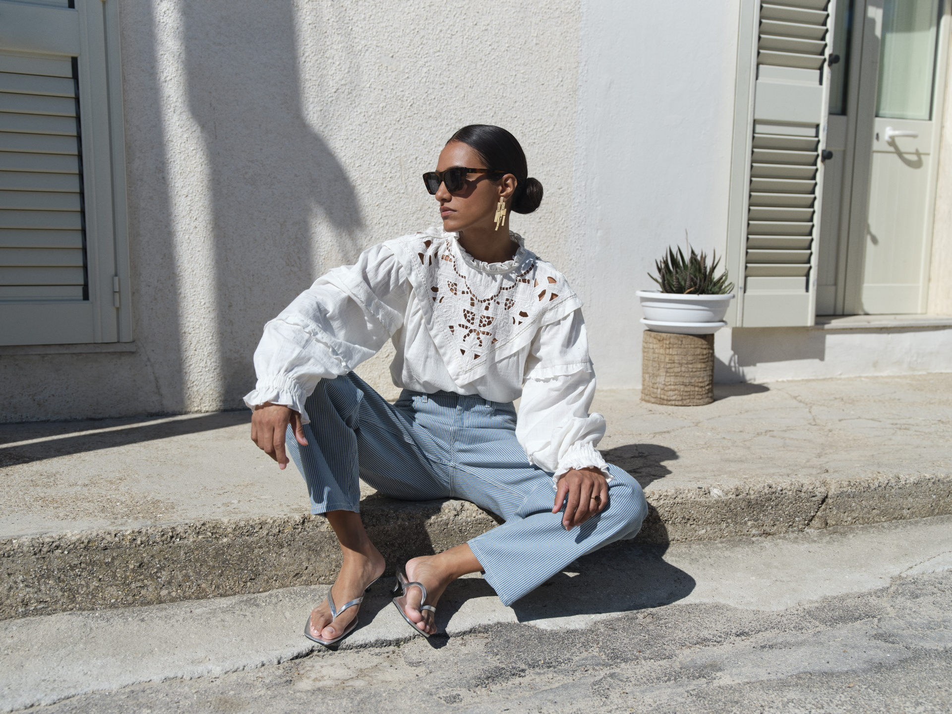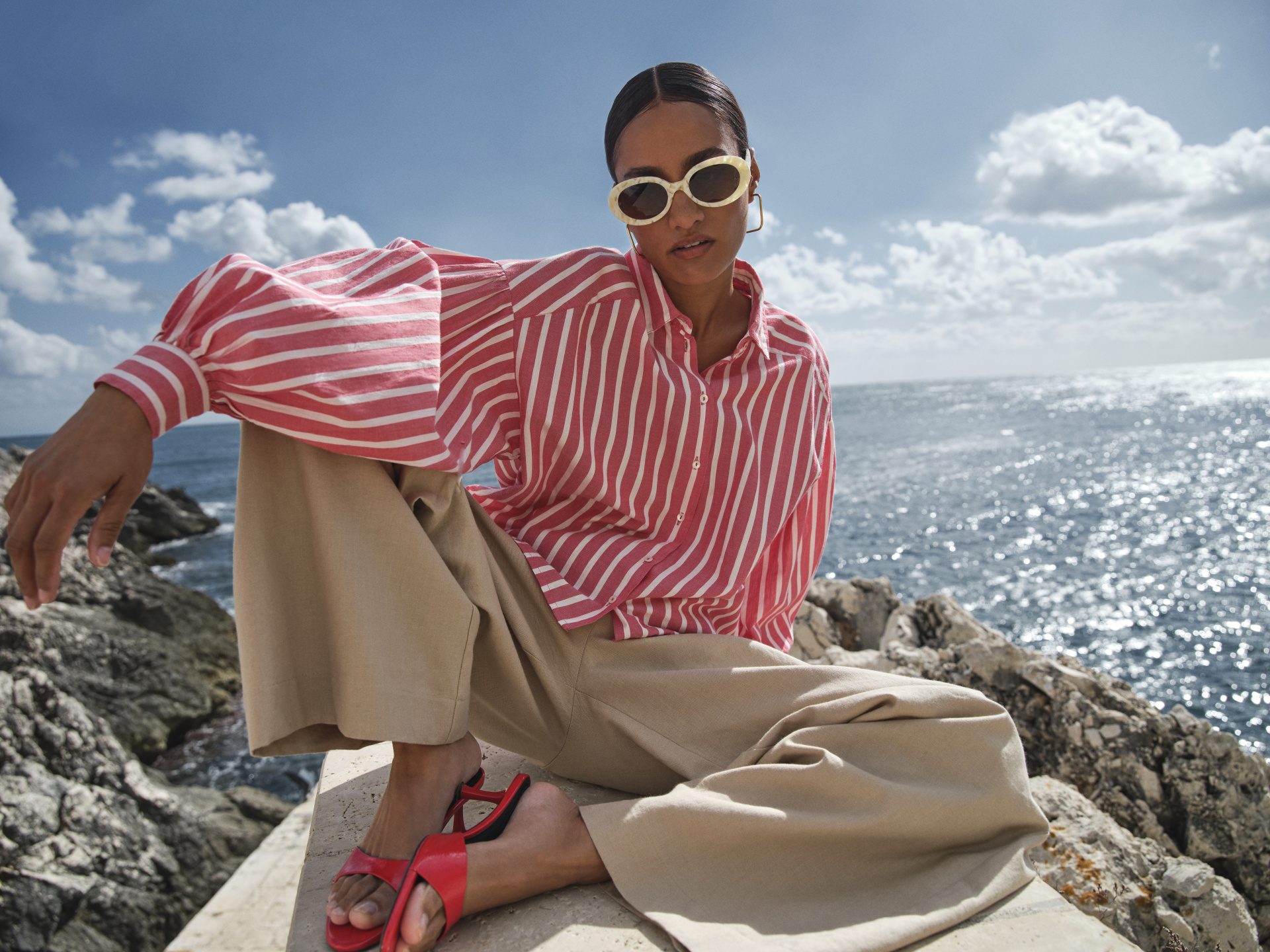Accessoires staan dit seizoen centraal en vormen de finishing touch die de by-bar look compleet maakt. De collectie introduceert de Noa sunglasses, een nieuw iconisch montuur dat het licht vangt en elke outfit een ontspannen uitstraling geeft. Naast de eyewear collectie, introduceert het merk metallic ballerina’s en een zilveren tas als eyecatchers, die zorgen voor een eigentijdse edge. Om de seizoenen te overbruggen, vormen zachte teddy gilets de perfecte textuurrijke laag voor de frisse overgangsdagen.