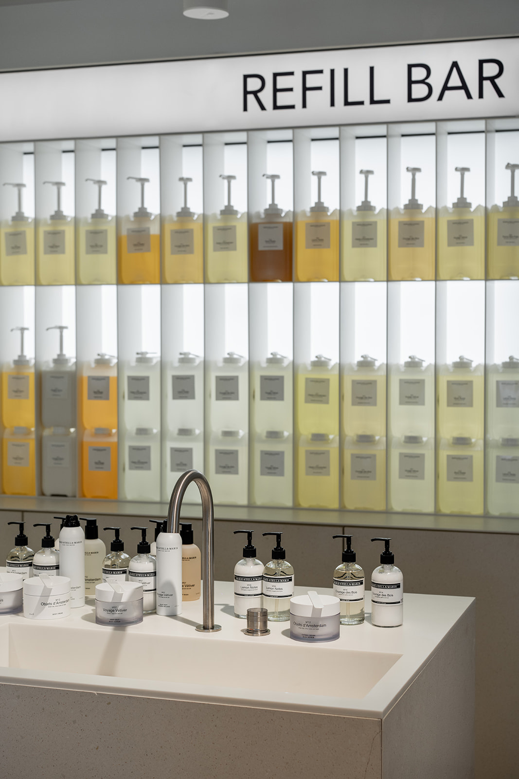 Marie-Stella-Maris richt zich op de ontwikkeling van tijdloze en kwalitatieve verpakkingen die lang meegaan en je eindeloos kunt navullen. Met navullen bespaar je afval, CO2 en water - en verminder je je impact op het milieu. Elke Marie-Stella-Maris Store dient direct ook als een Refill Station. Je kunt daar bij de Refill Bar bijna het hele assortiment navullen tegen een gereduceerde prijs. Daarnaast zijn er in de webshop ook refill verpakkingen verkrijgbaar, waarmee je ook eenvoudig afval en kosten bespaart. Join the refillution!